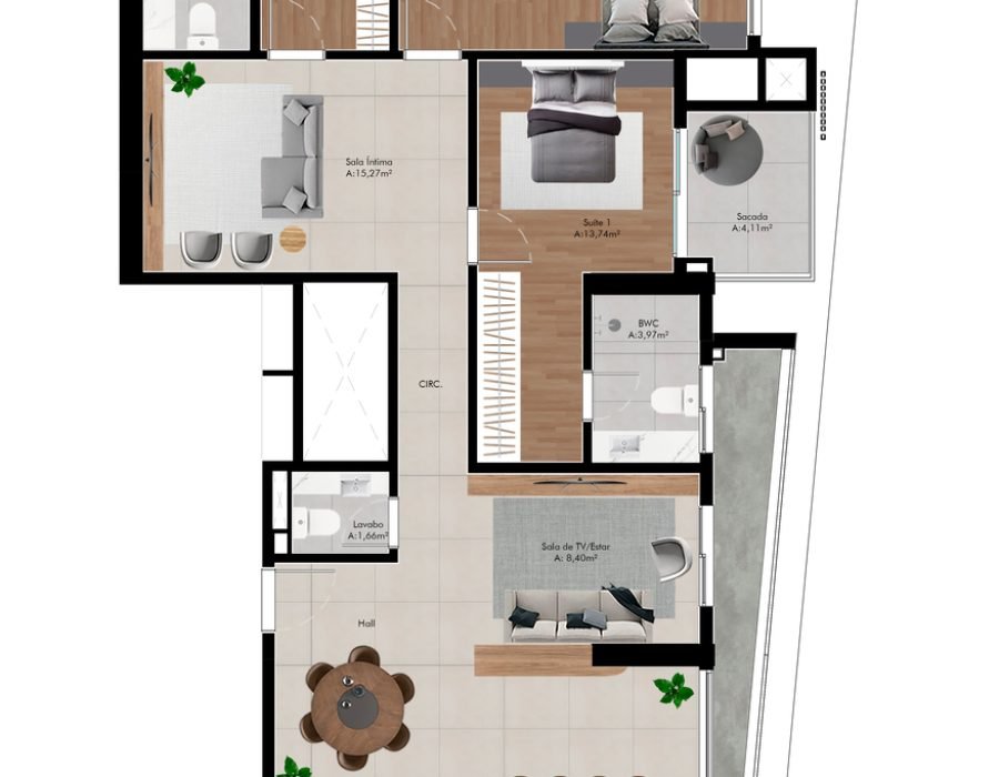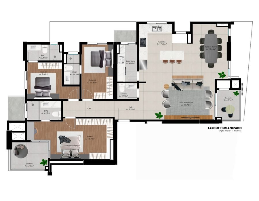 Suíte +01 com 77,12 m²