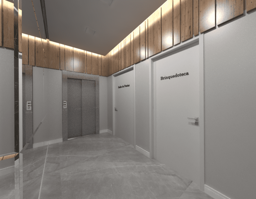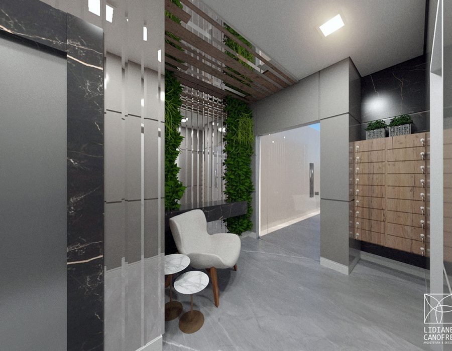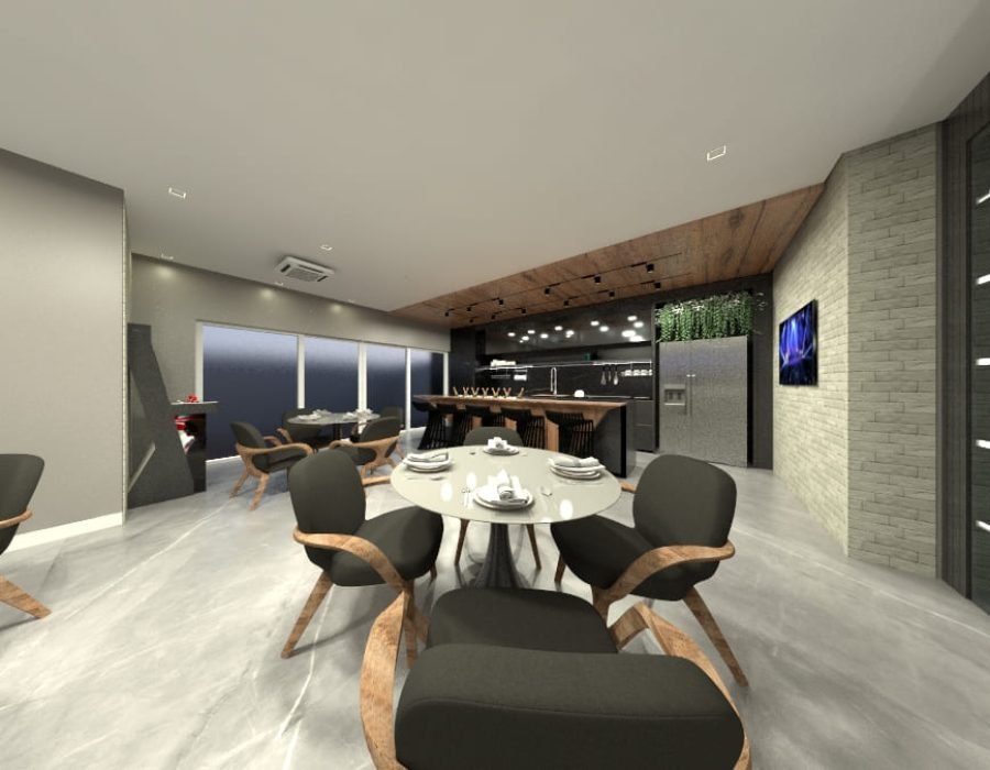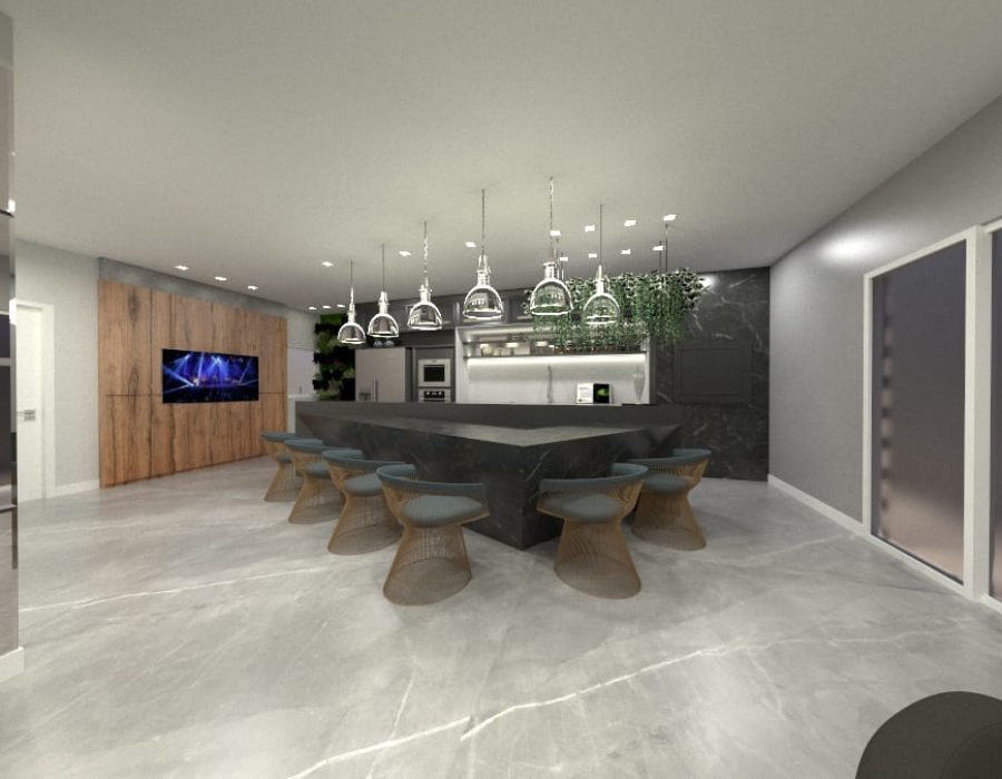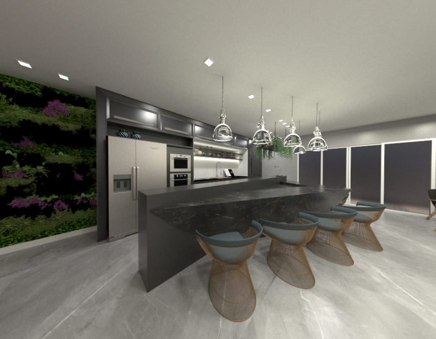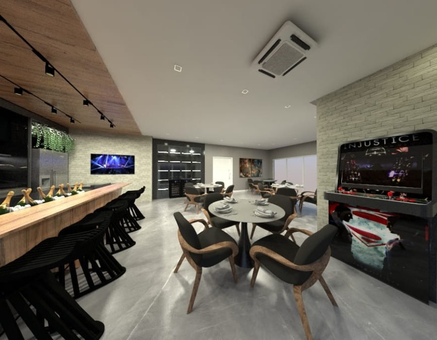 Áreas sociais mobiliadas, decoradas e automatizadas.