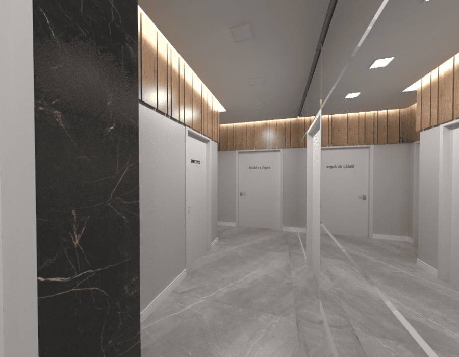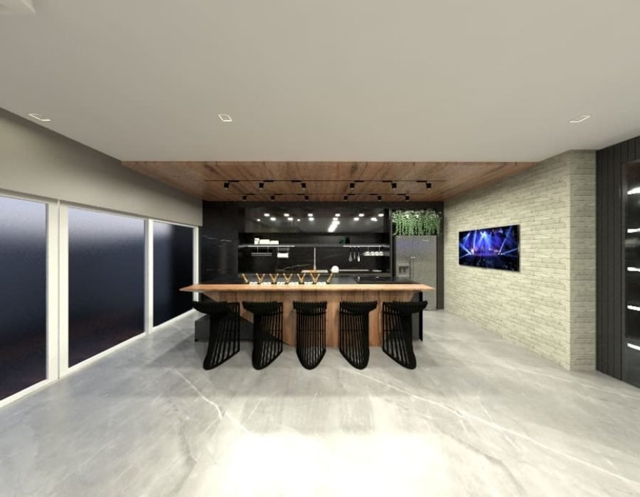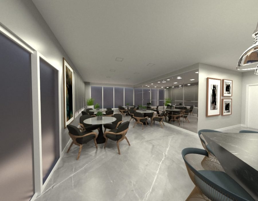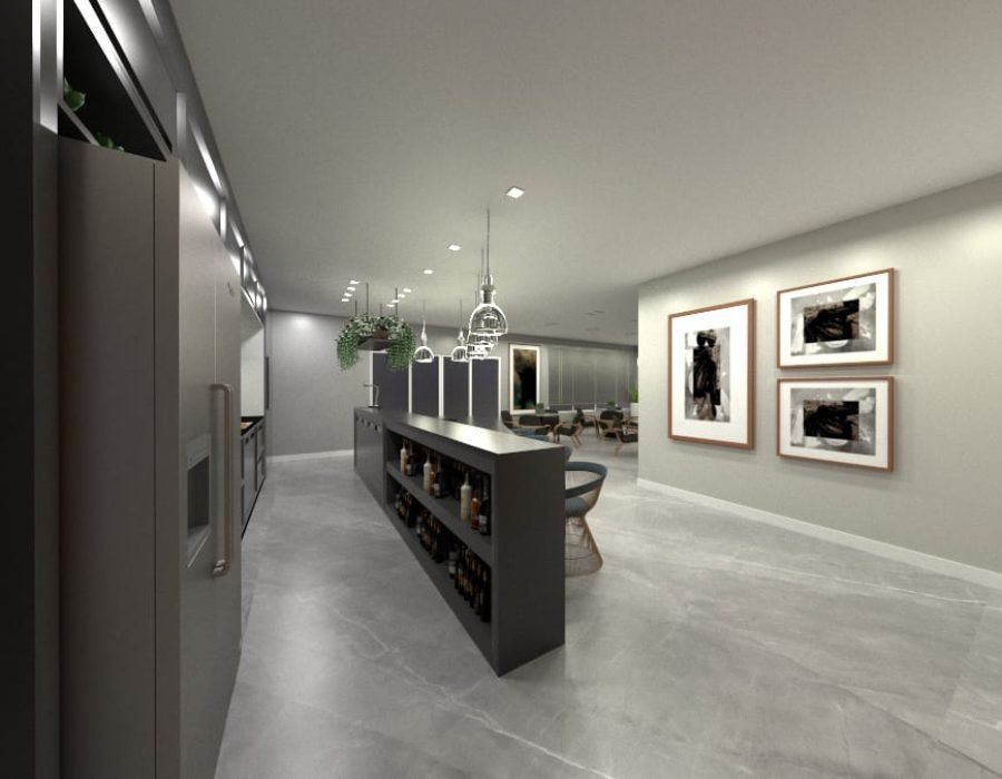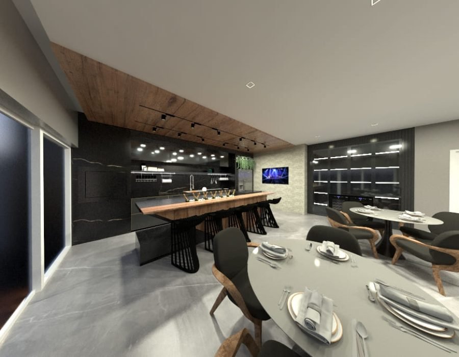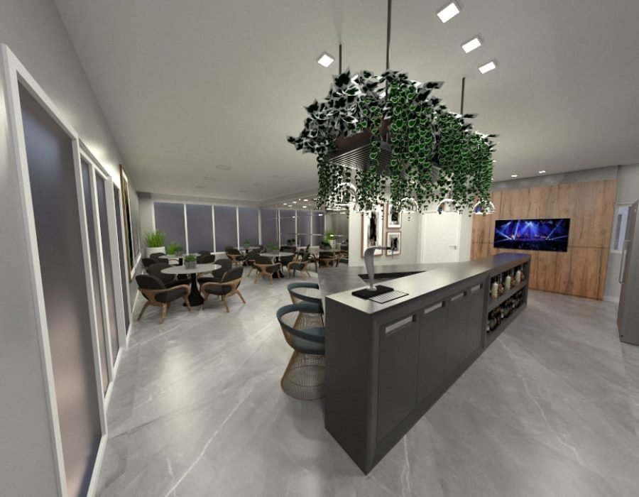 Áreas sociais mobiliadas, decoradas e automatizadas.